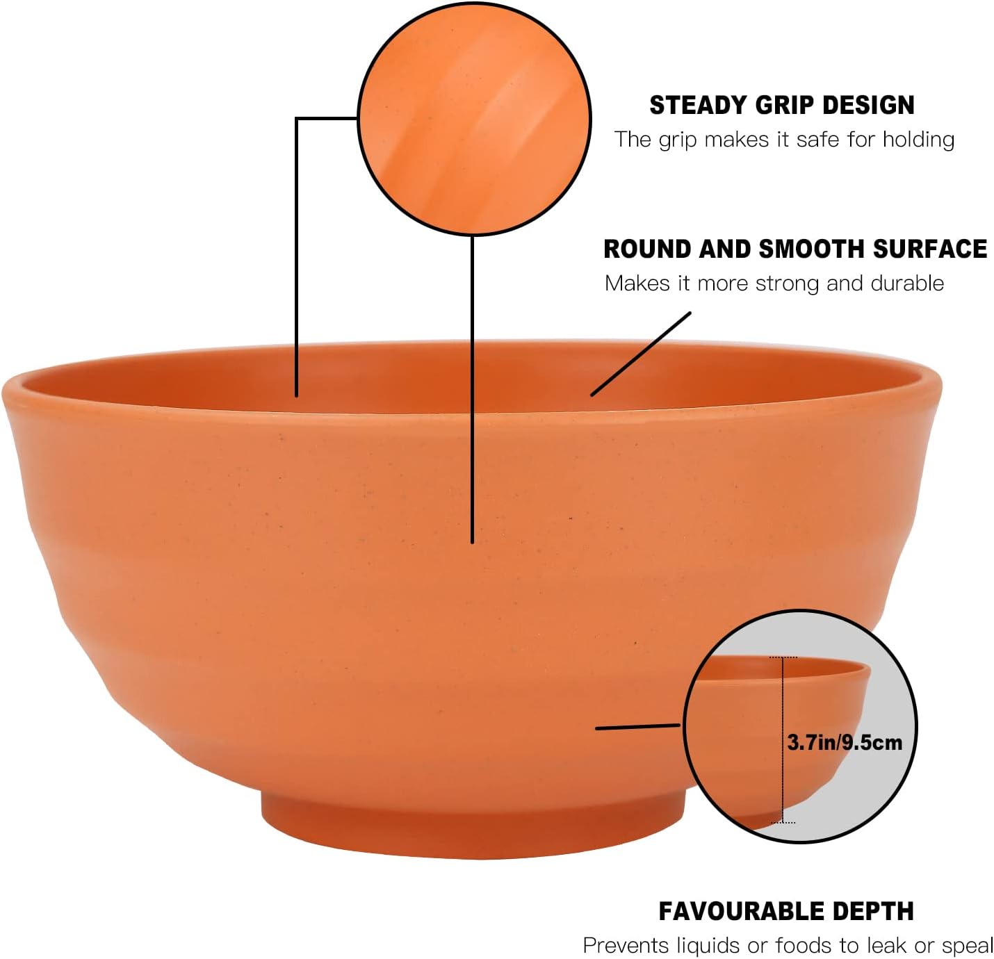 These bowls are big and beautiful. I love the colors! These bowls are a perfect size to accommodate lots of ice cream, cereal, salad, soup, and/or pasta. I was worried these might not be big enough for our needs, but they are! I love them so much; I purchased another set of 6 right away. I like that these are dishwasher safe, microwave safe and non-toxic. The bowls are all different colors and have a pretty design on the side. The edge of the bowl is nice and smooth, so if you are sipping milk or soup from it, it doesn't irritate your lips. Highly pleased, very satisfied, I would recommend these bowls.