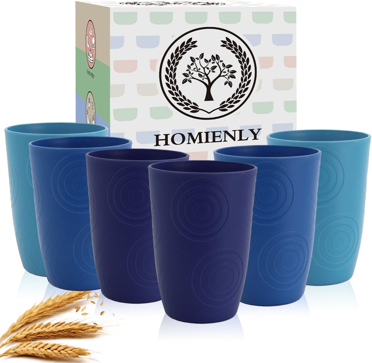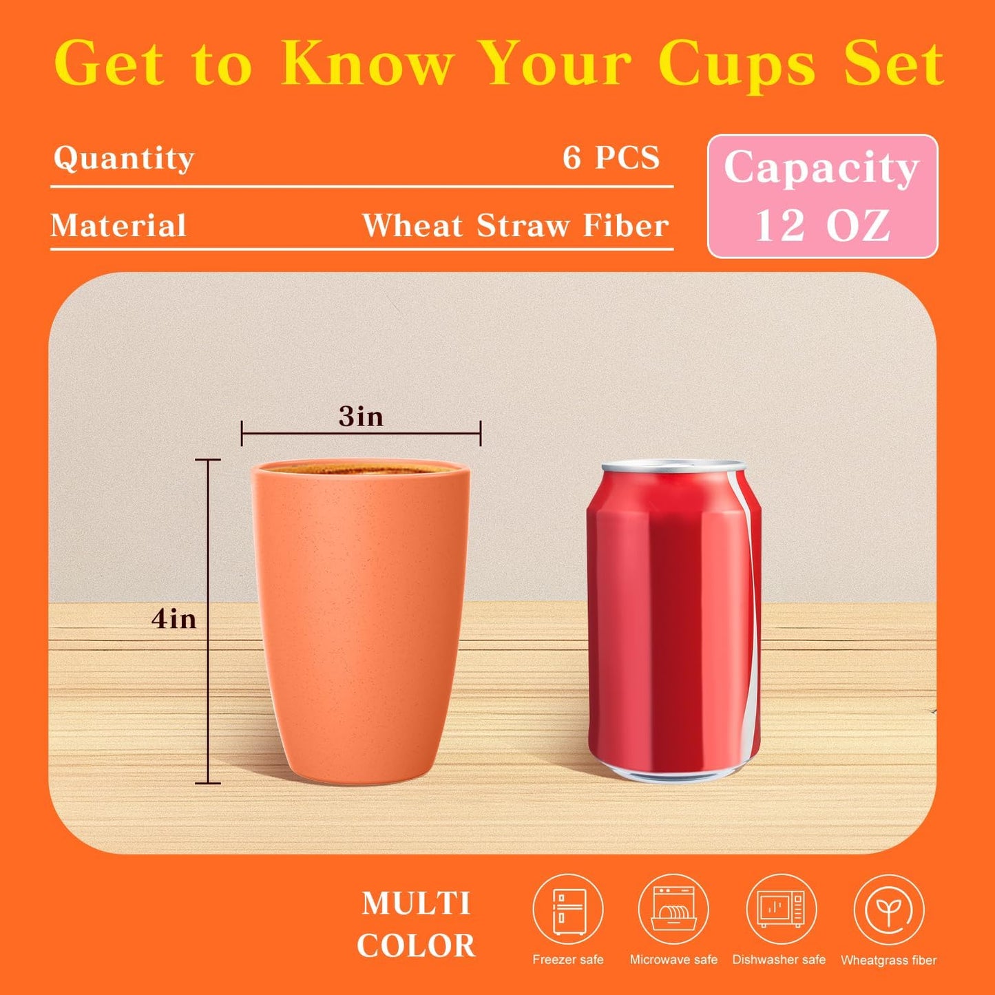 Homienly Drinking Glasses Premium Wheat Straw Unbreakable Cups - Set of 6 Cups(12 OZ Colorful)