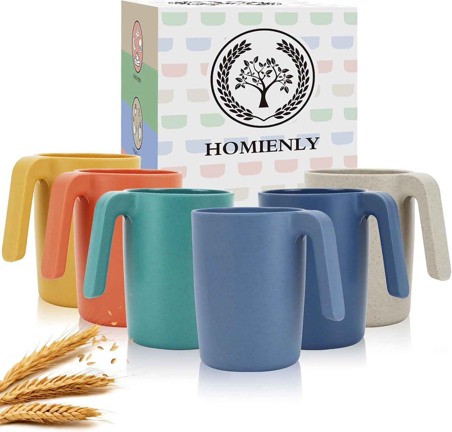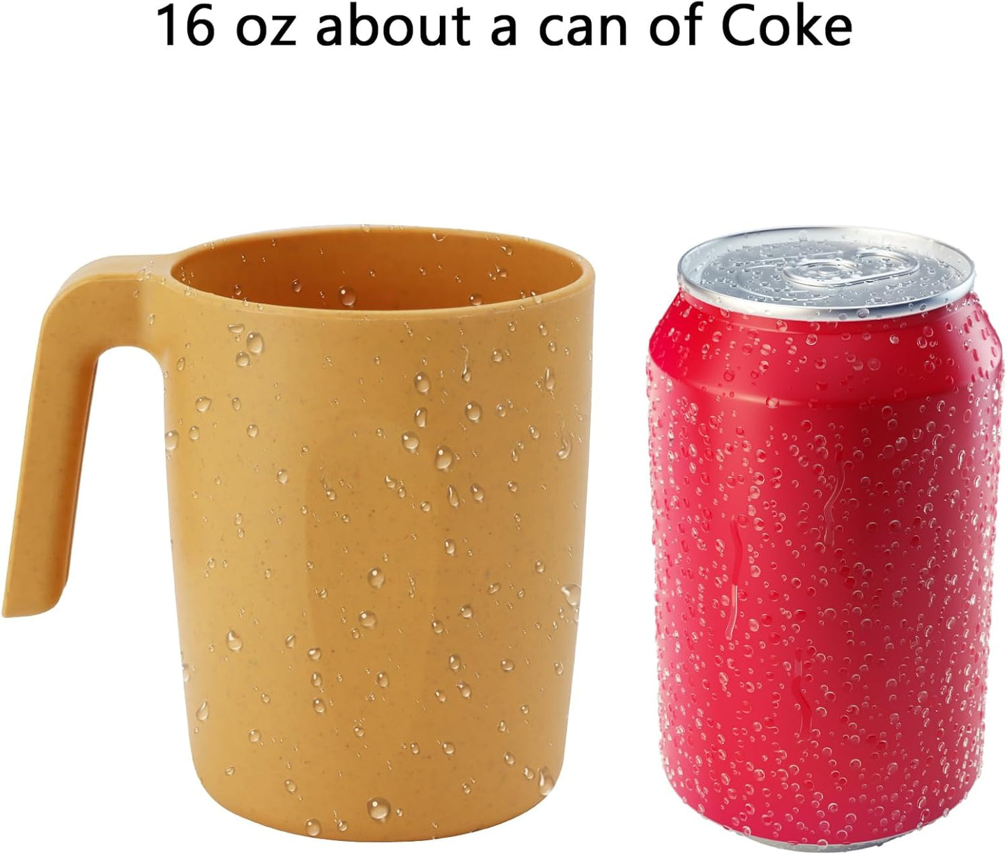 Homienly Wheat Straw Cups with Handle Plastic Cups Mug Sets of 6 Unbreakable Drinking Cup (16 OZ with Handle)