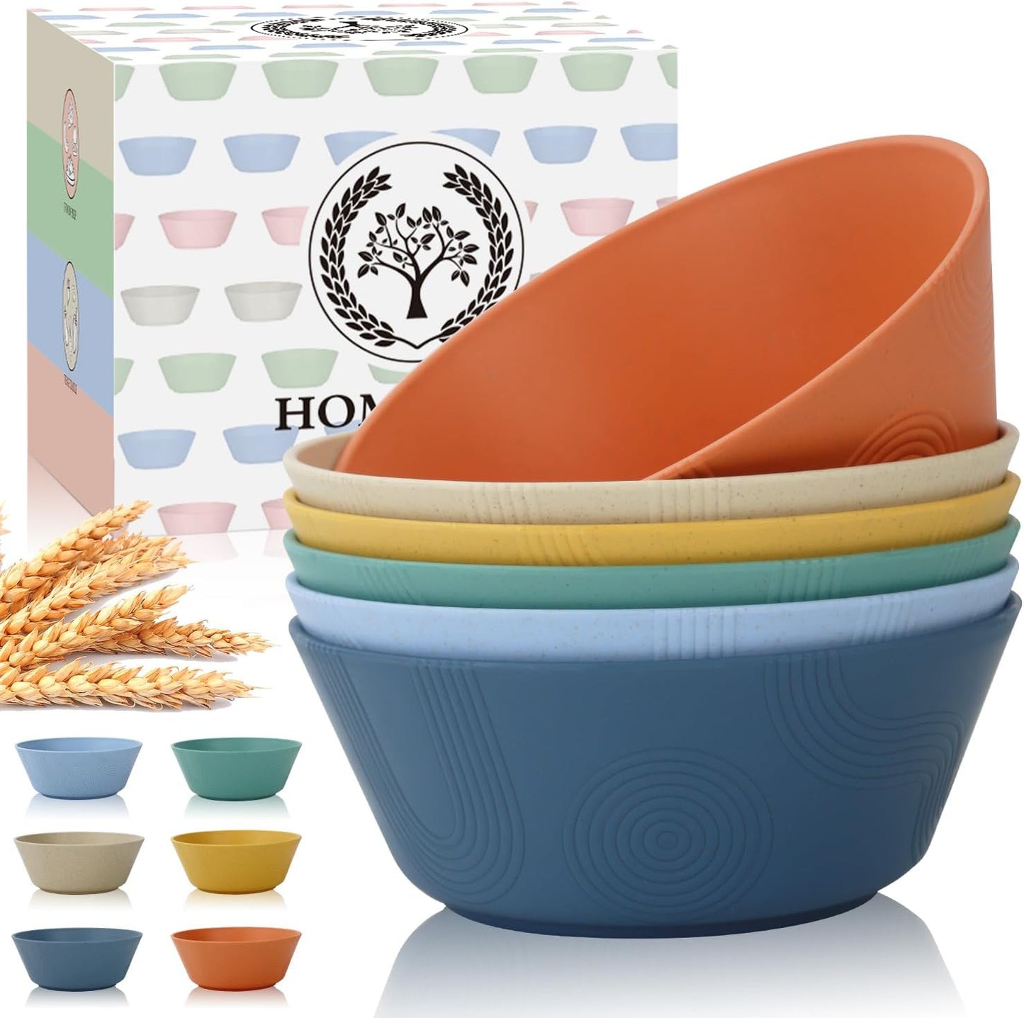 Homienly Bowls for Kitchen Cereal Bowls Wheat Straw Bowls 8 PCS Reusable Bowl for Serving Soup,Oatmeal,Ramen,Salad(Multi, 26 OZ)
