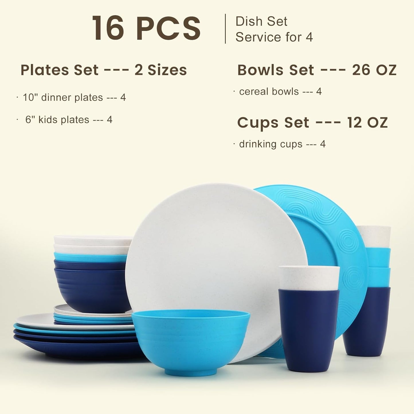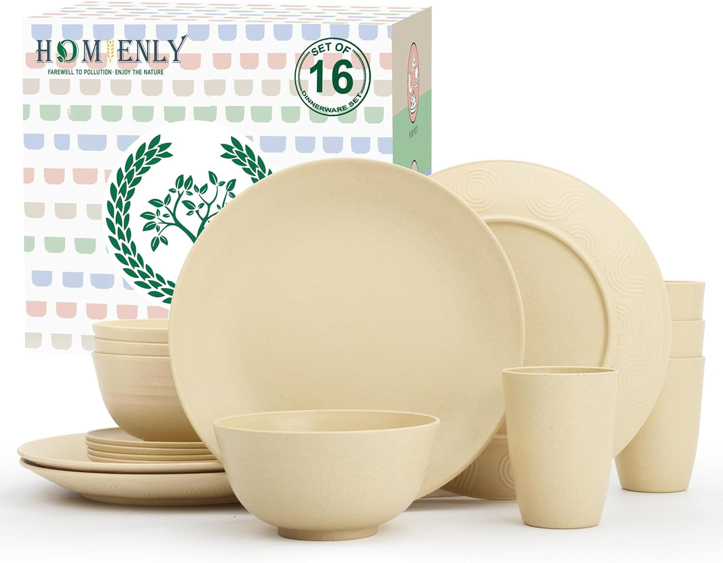 Homienly Premium Wheat Straw Dinnerware Sets, Lightweight & Unbreakable Plates and Bowls Sets,Cups,Service for 4,Dishwasher and Microwave Safe 16 PCS Dish Sets for Home?Camping- Beige