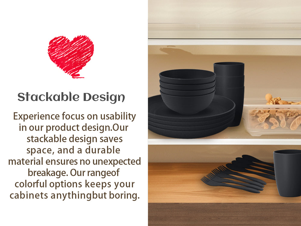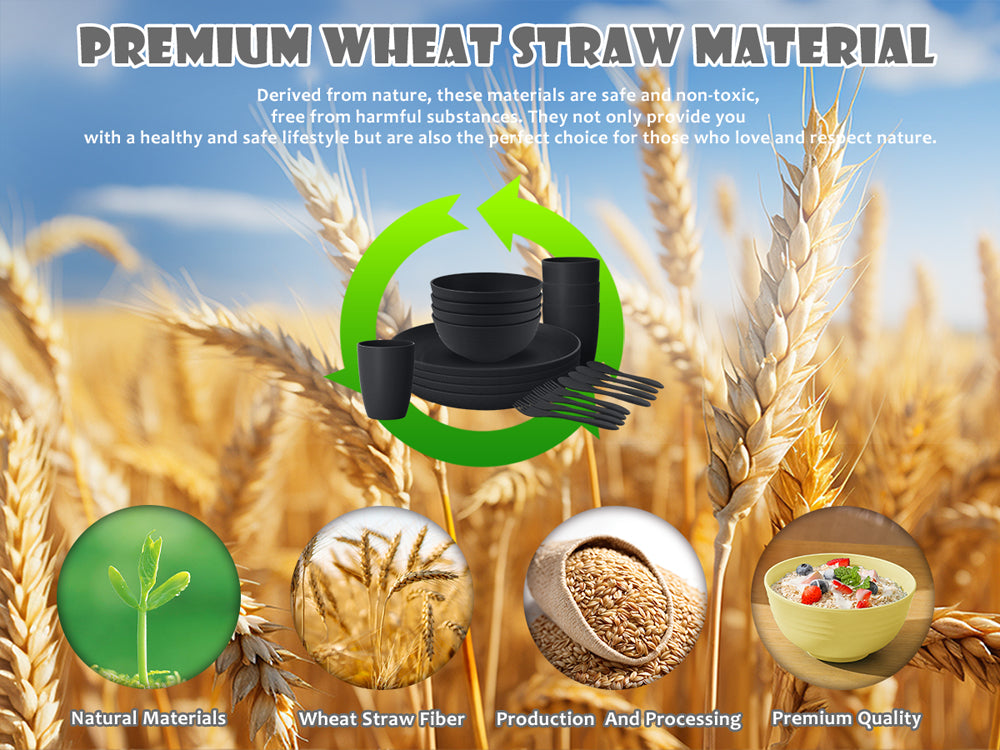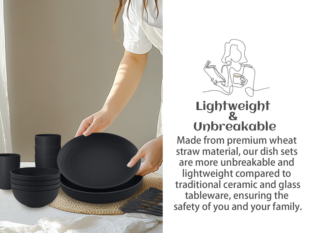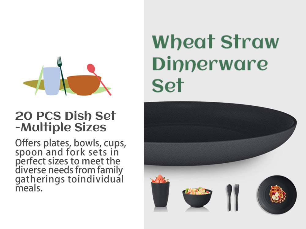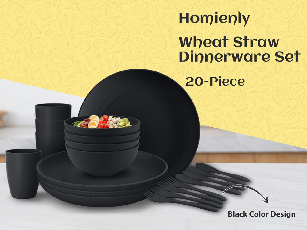 Homienly Wheat Straw Dinnerware Sets, 20pcs Microwave Dishwasher Safe Bowls, Cups, Plates Set(Matte Black)