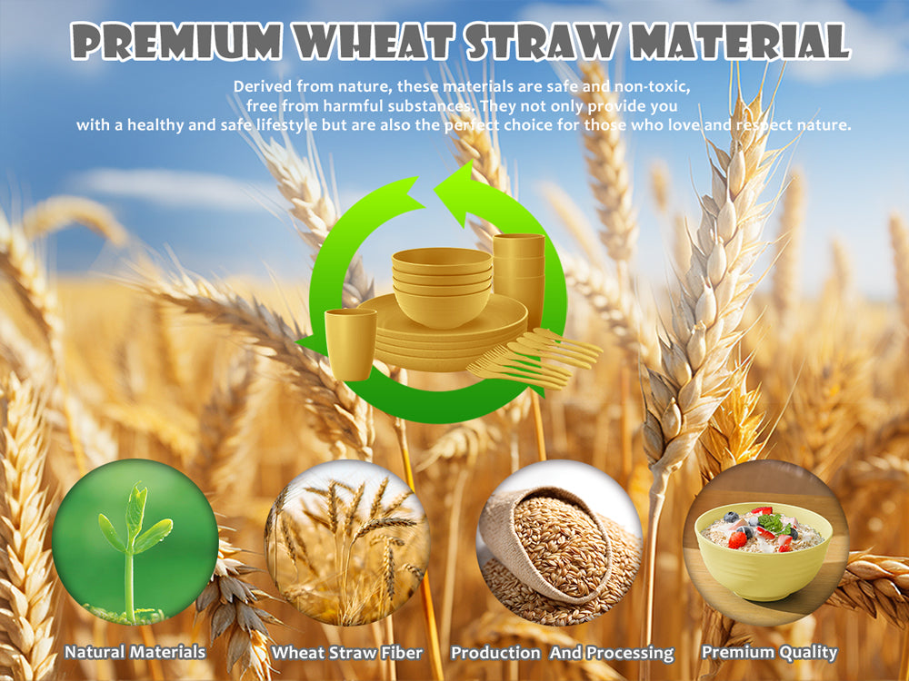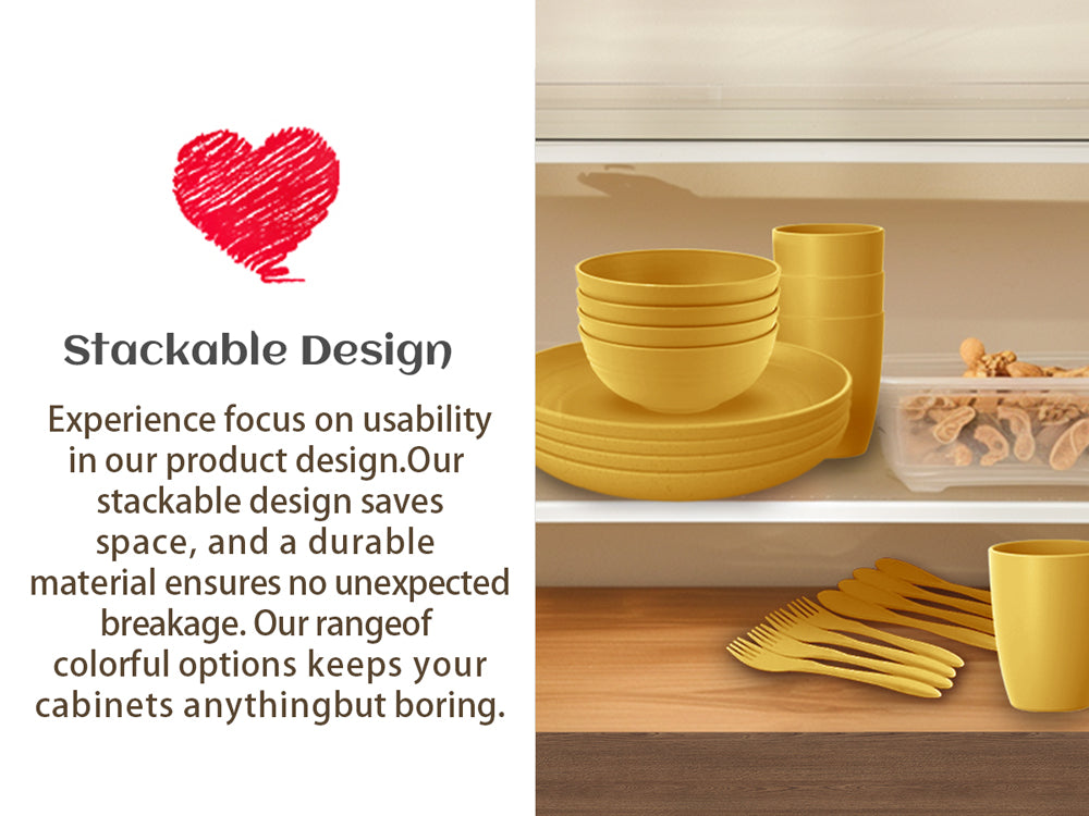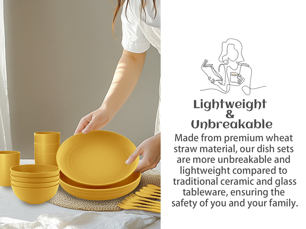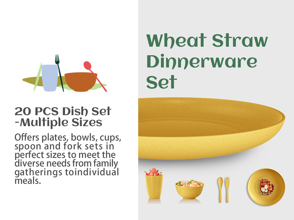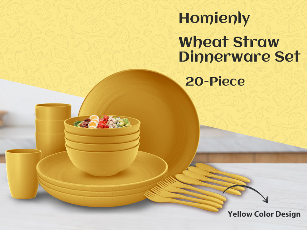 Homienly Wheat Straw Dinnerware Sets, 20pcs Unbreakable Tableware Lightweight Bowls, Cups(Yellow)