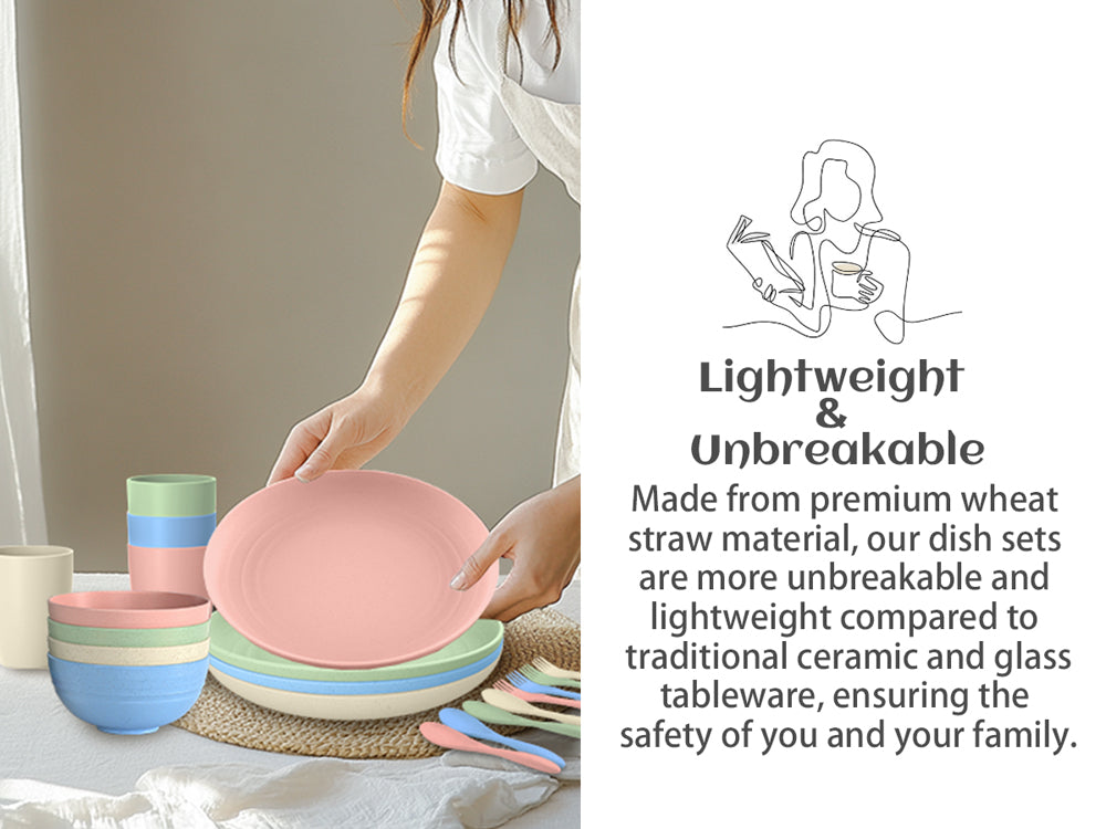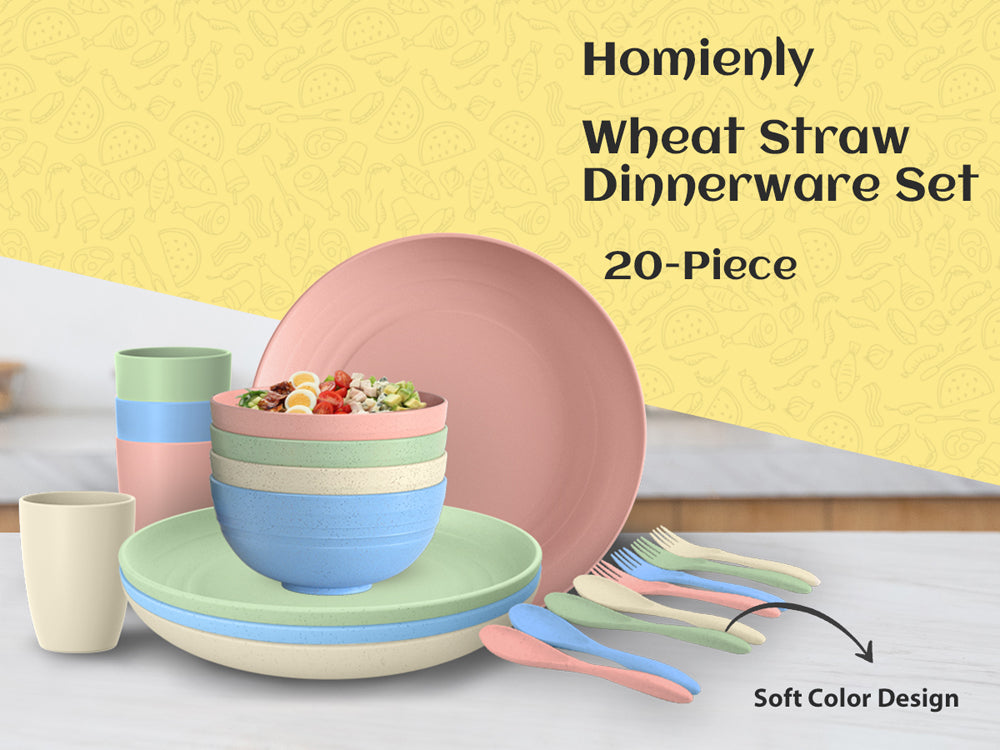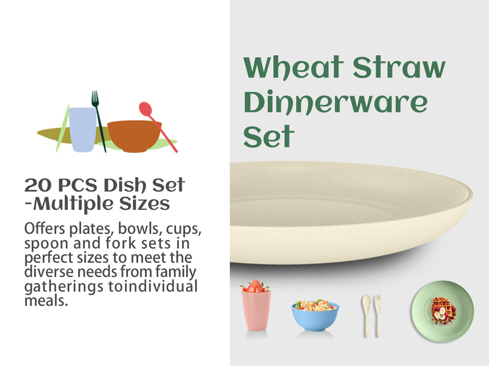 Wheat Straw Dinnerware Sets, 20 PCS Dishes Dinnerware Set Dinner Plates Kids Plates and Bowls Sets for Kitchen