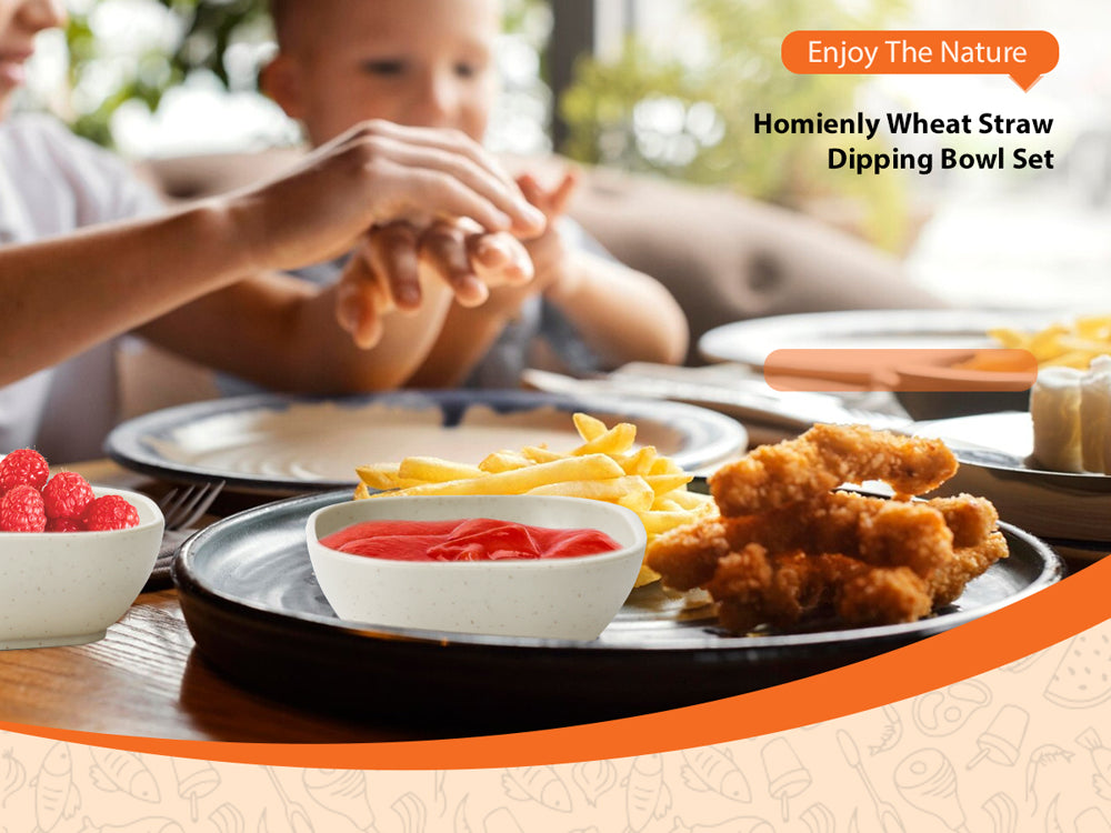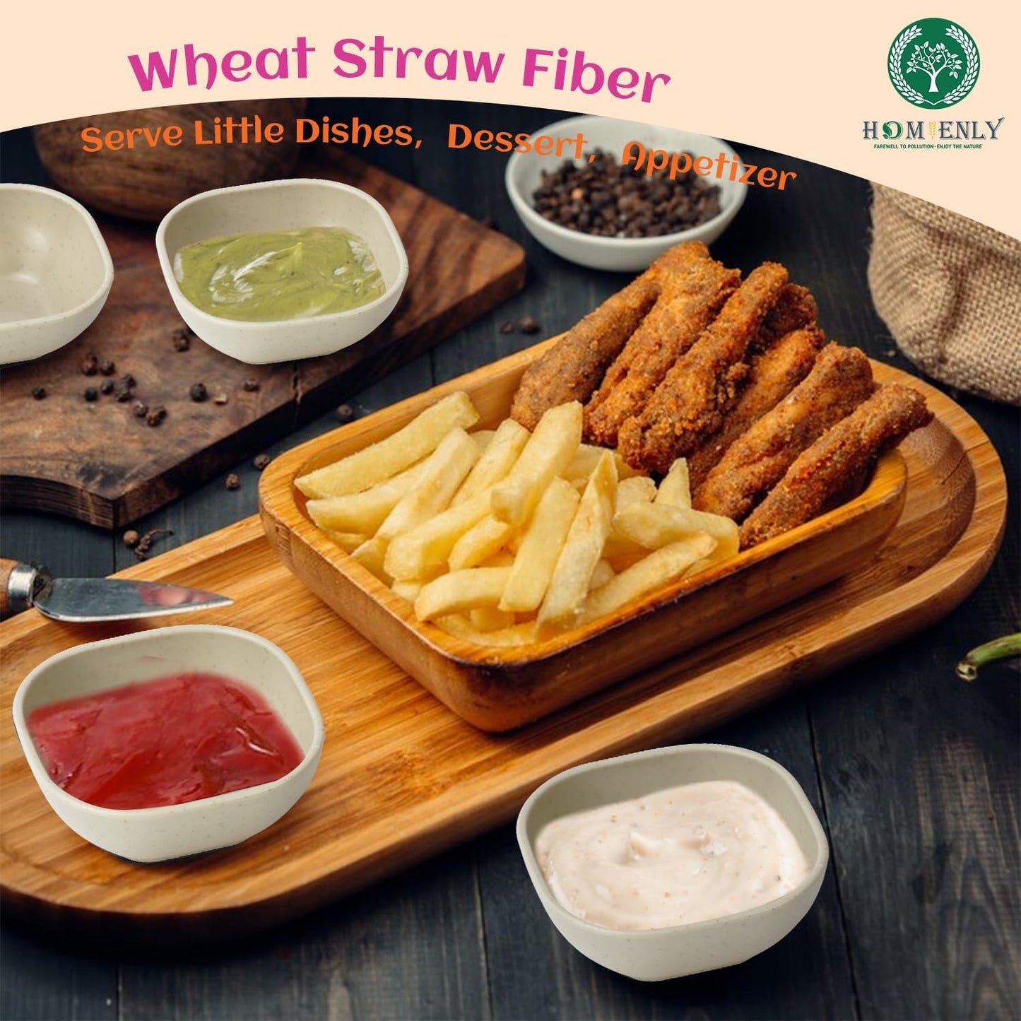 Homienly Soy Sauce Dishes,Wheat Straw Small Bowls Set of 6-4.5 OZ Small Dessert Bowls,Dipping Sauce Cups,Mini Prep Bowls, Dip Bowls for Side Dish - Beige