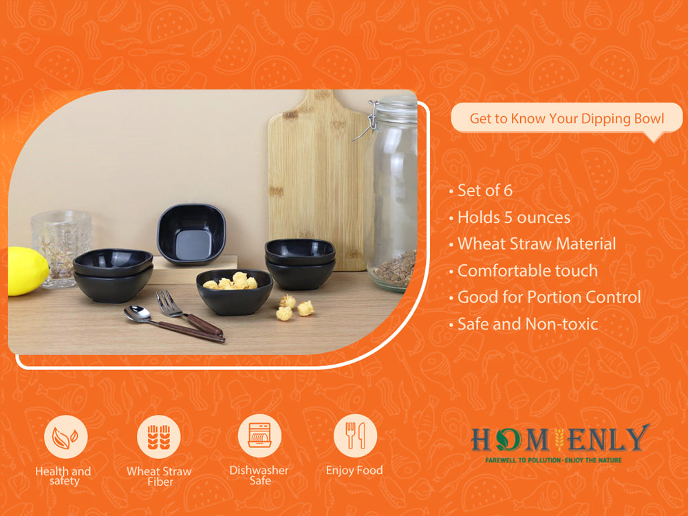 Homienly Soy Sauce Dishes,Wheat Straw Small Bowls Set of 6-4.5 OZ Small Dessert Bowls, Mini Prep Bowls - Black