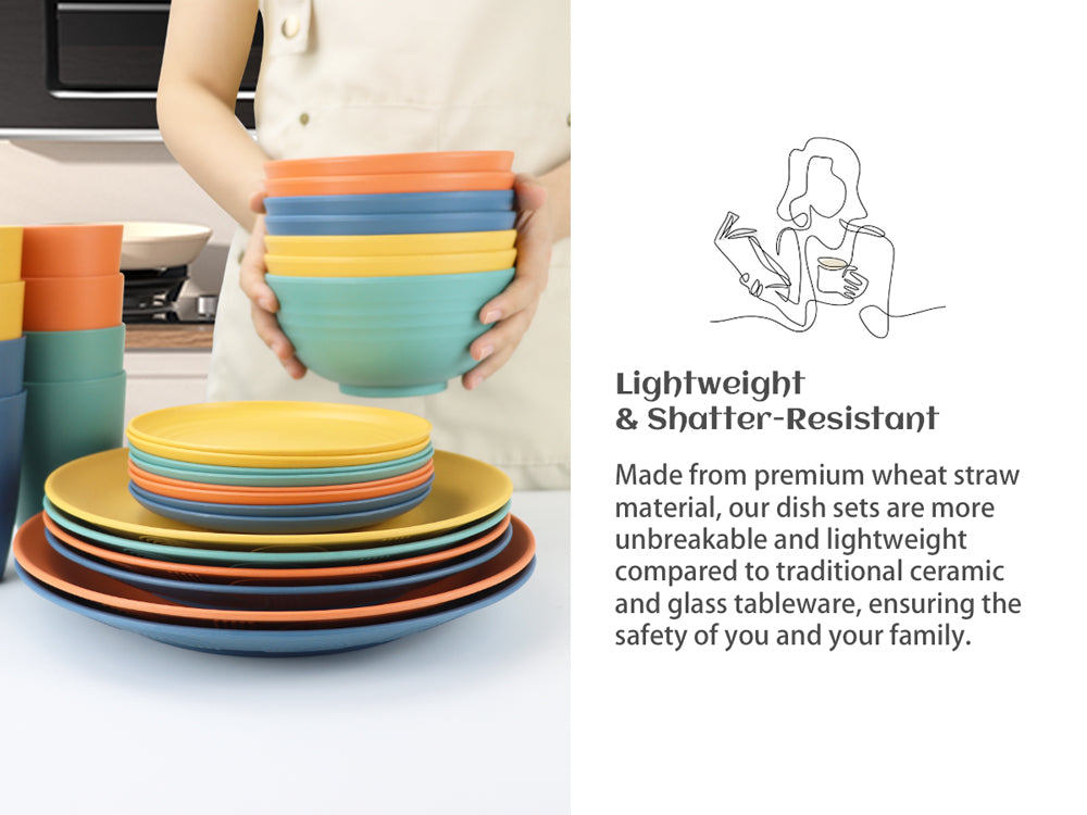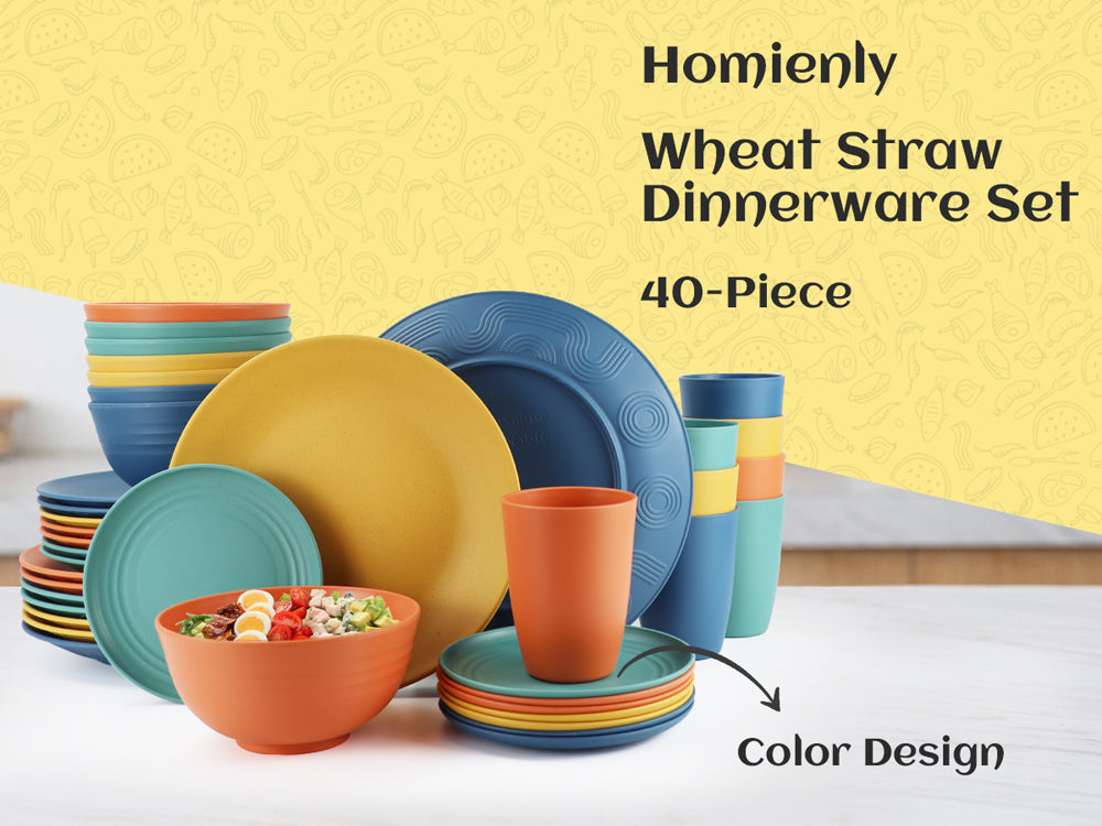 Homienly 40-Piece Premium Wheat Straw Dinnerware Sets, Service for 8,Cups Sets, Dinner Plates, Bowls for Kitchen - Multi