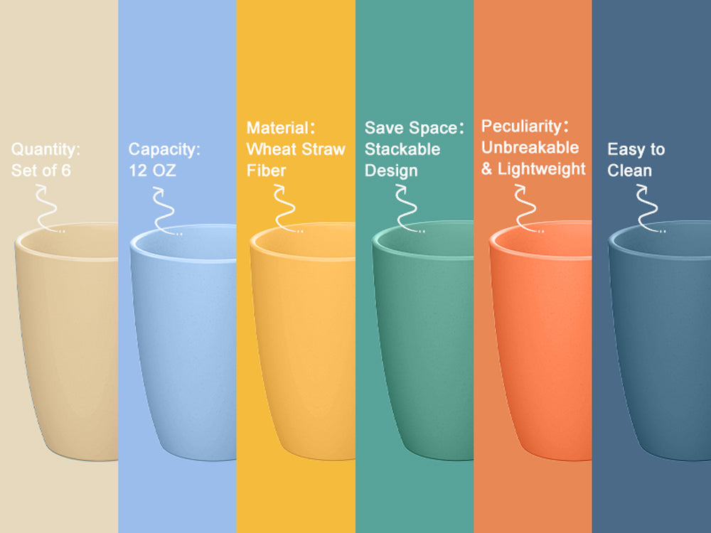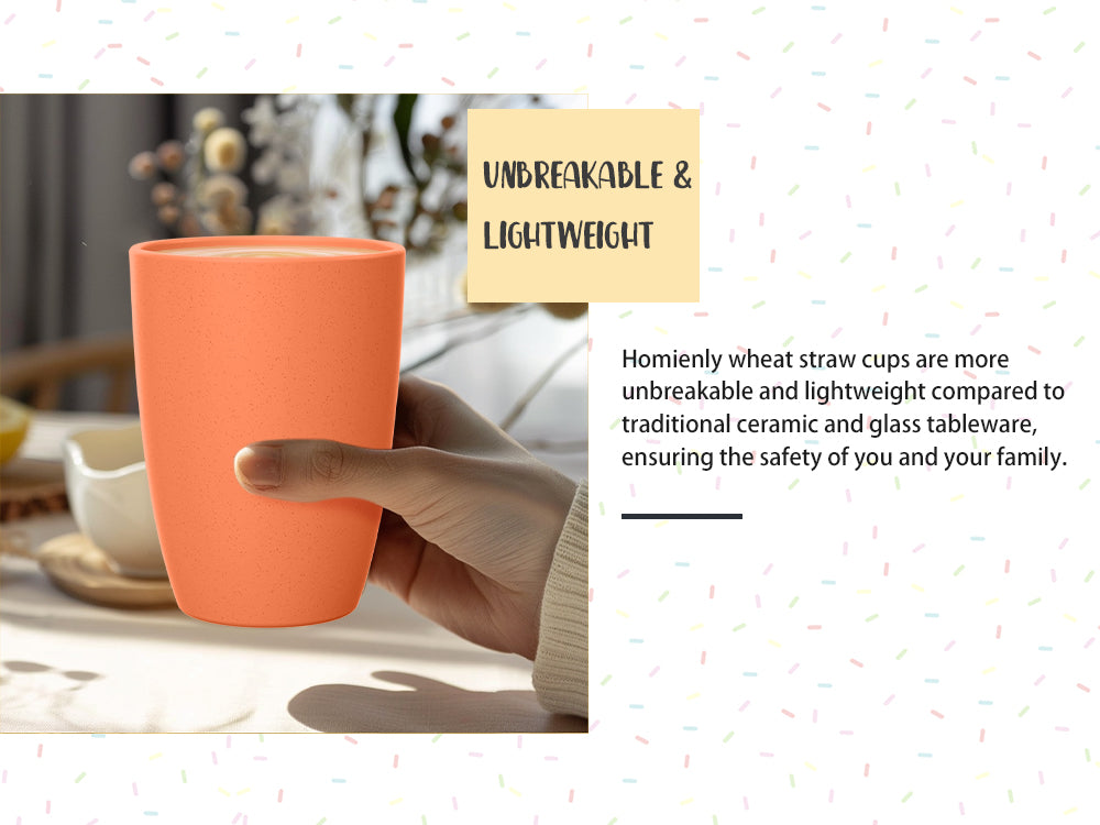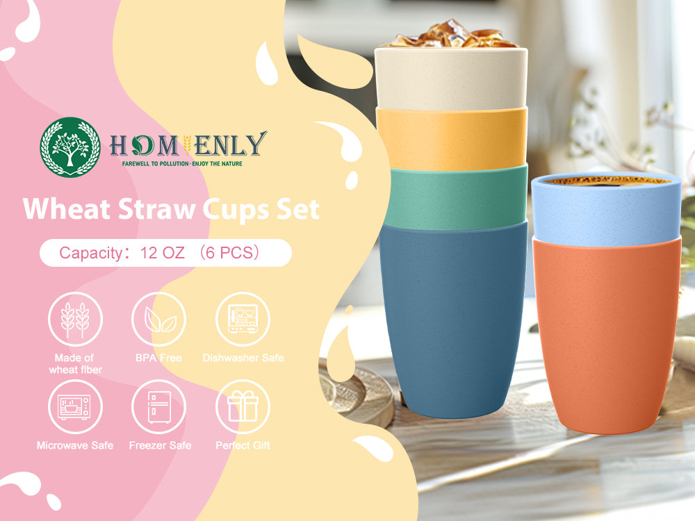 Homienly Wheat Straw Cups, Alternatives to Plastic Cups Reusable Set of 6, Tumblers(12 OZ, Colorful)