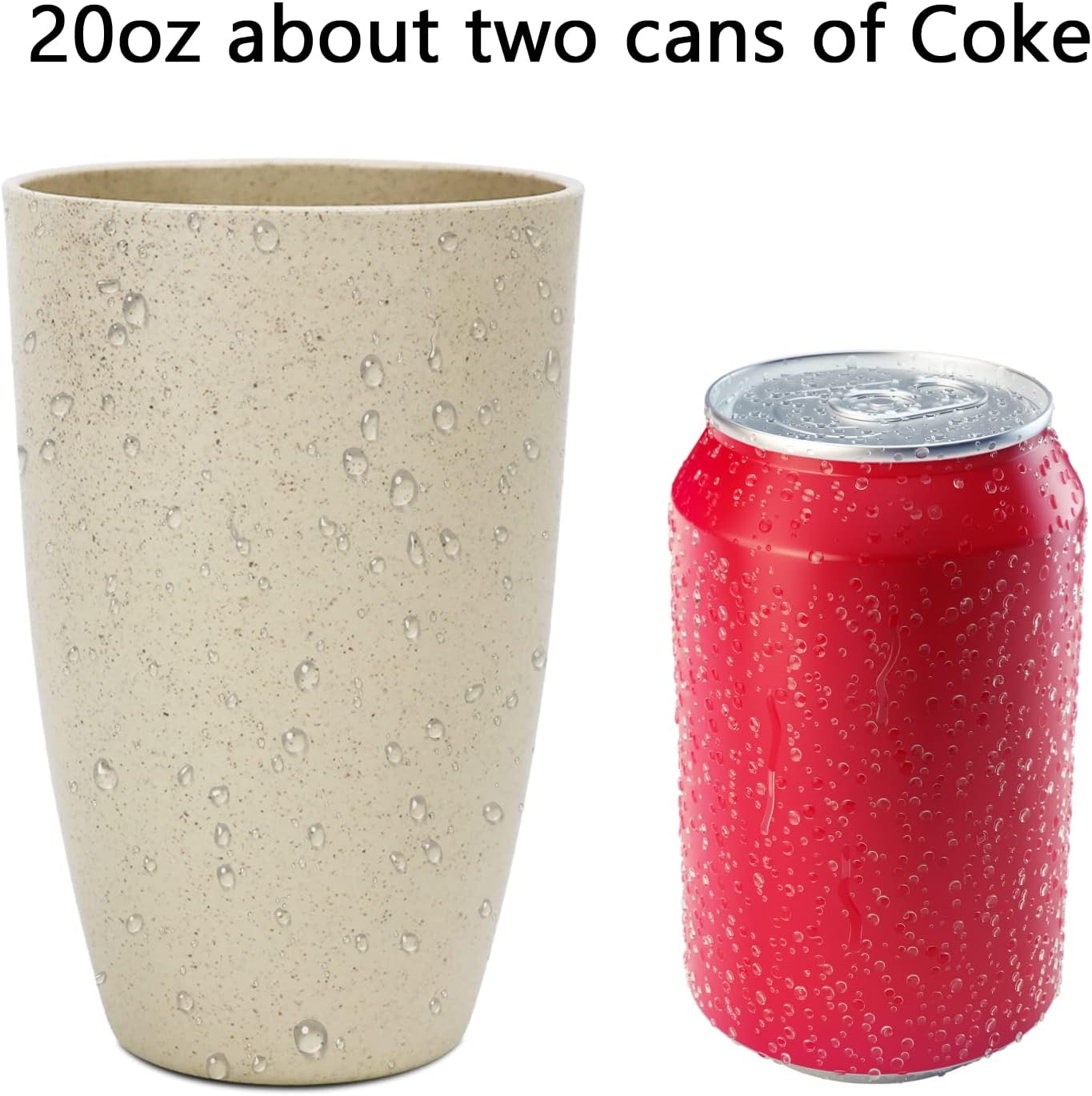 Homienly Wheat Straw Reusable Tumblers, 20 OZ Wheat Straw Cups - Set of 6,Cup for Kitchen, Camping - Beige