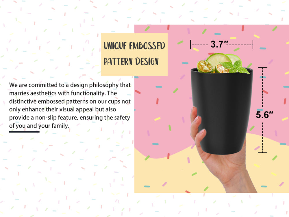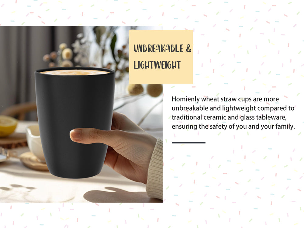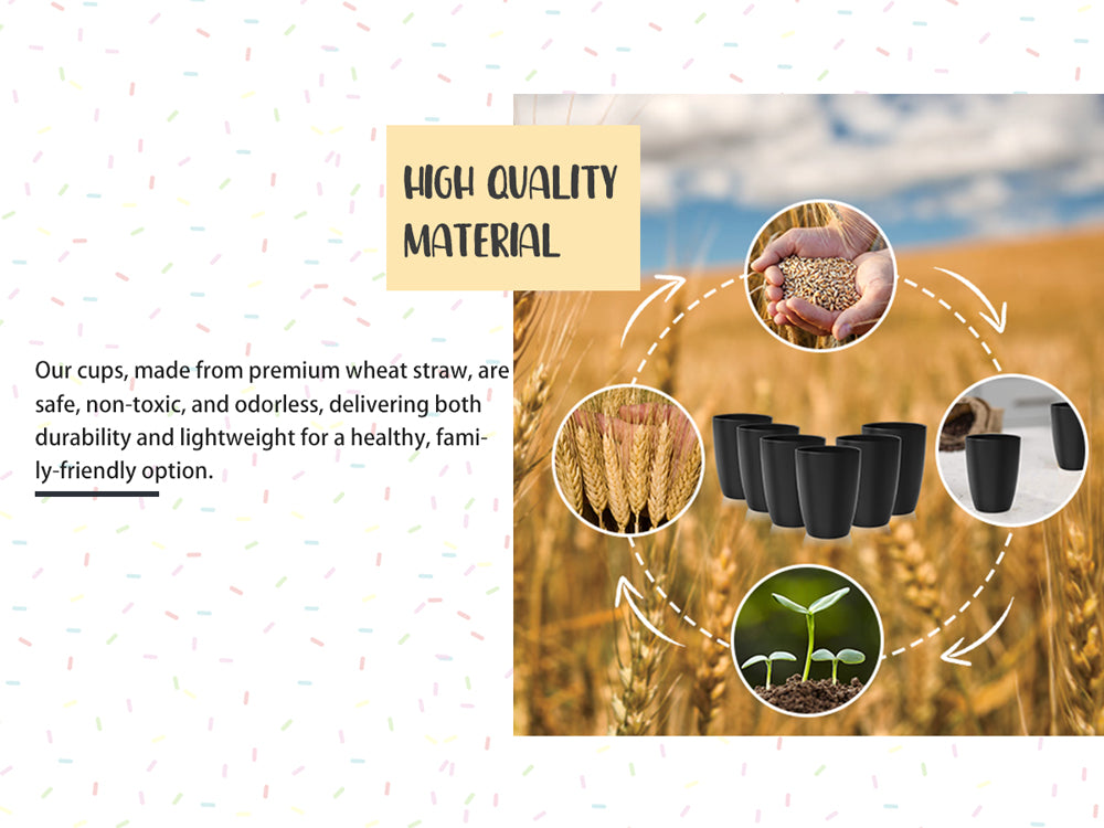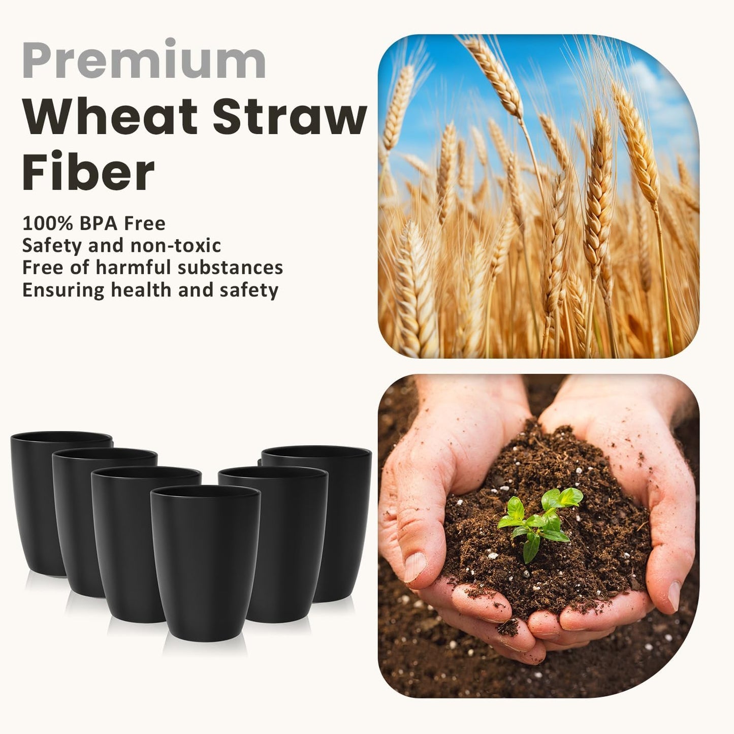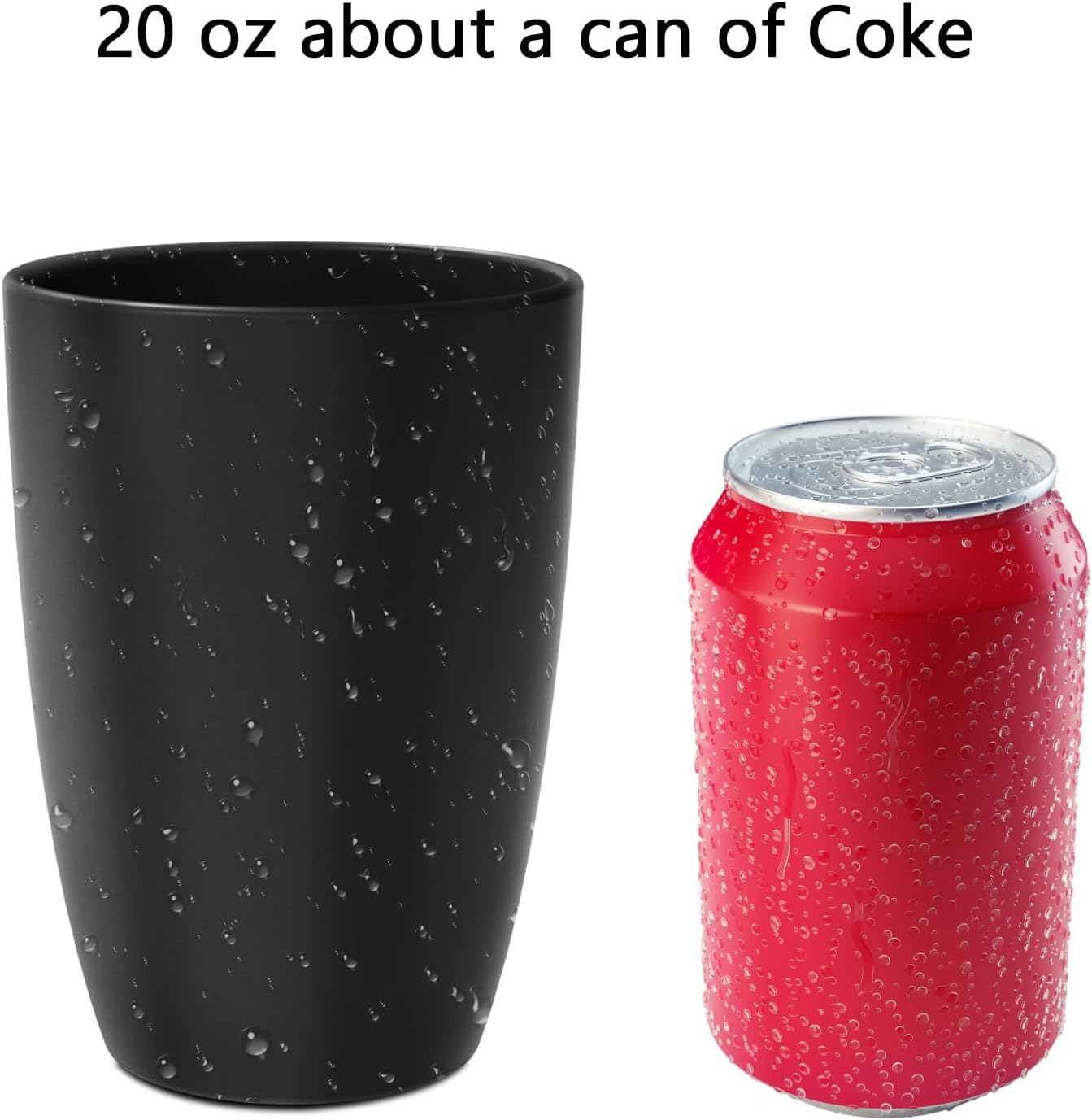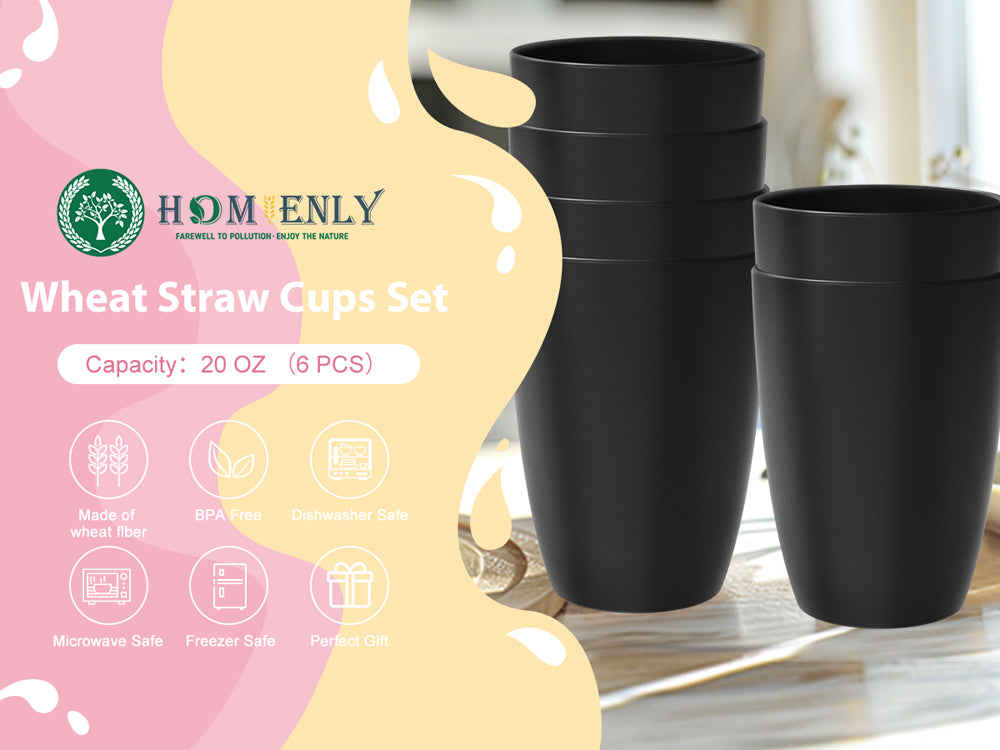 Homienly Wheat Straw Cups, 20 OZ Drinking Cups Set of 6, Plastic Cups Reusable, for Camping, Traveling - Black