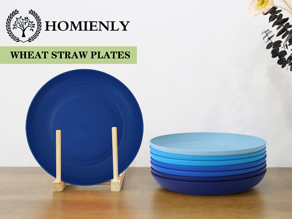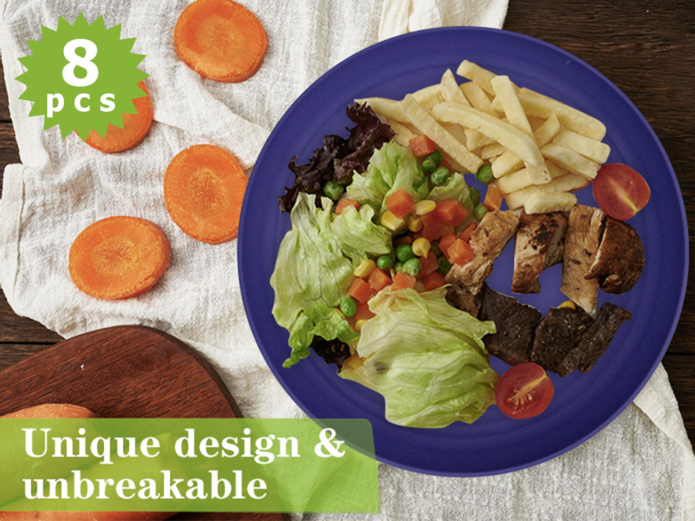 Homienly Wheat Straw Dinner Plates Set of 8-8 inch for Salad, Dessert, Appetizer,(Blue Series)