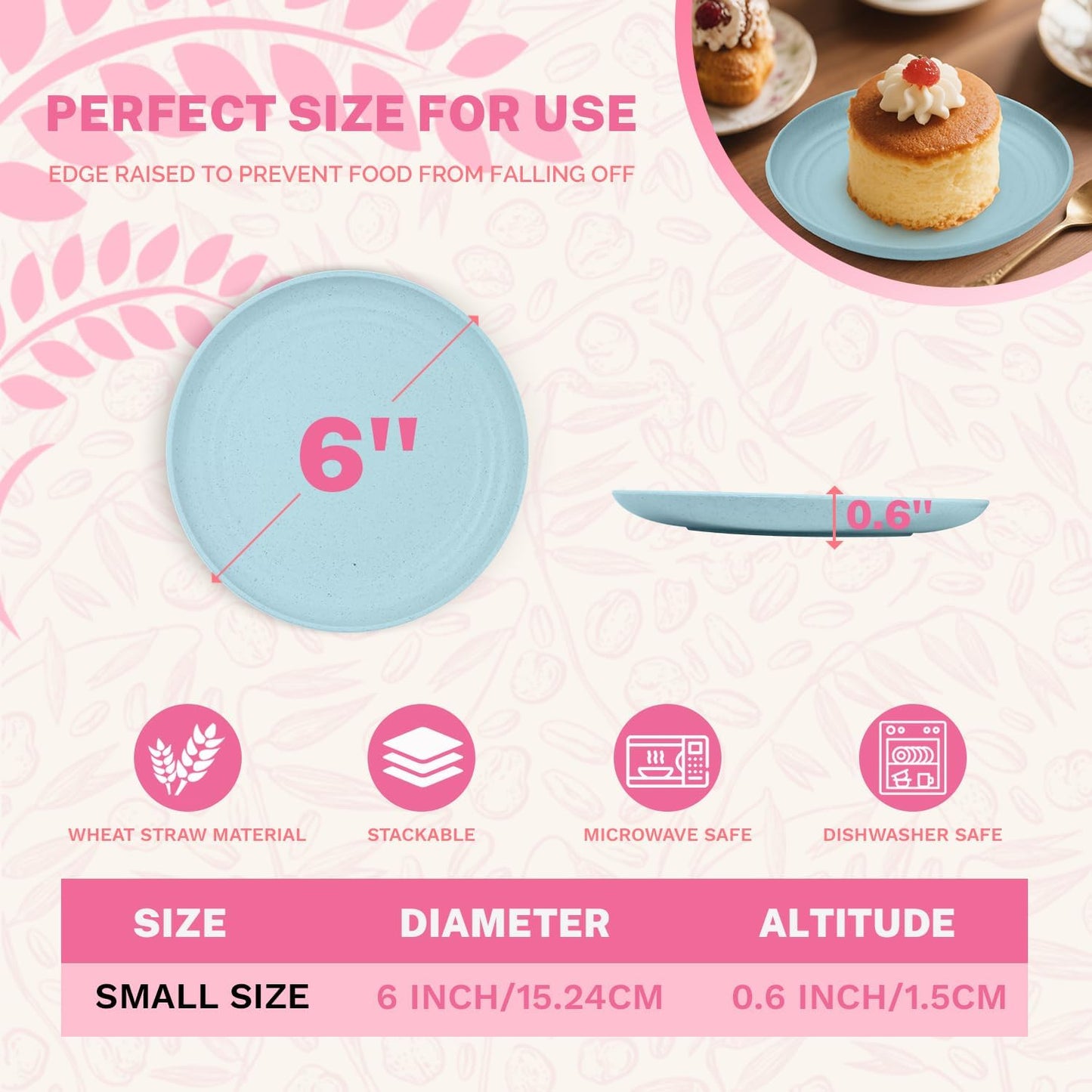 Homienly Wheat Straw Small Plates, Dessert Plates Set of 8, Wheat Straw Appetizer Plate for Snack, Side Dish, Unbreakable Microwave and Dishwasher Safe Mini Plate Set (Memphis)