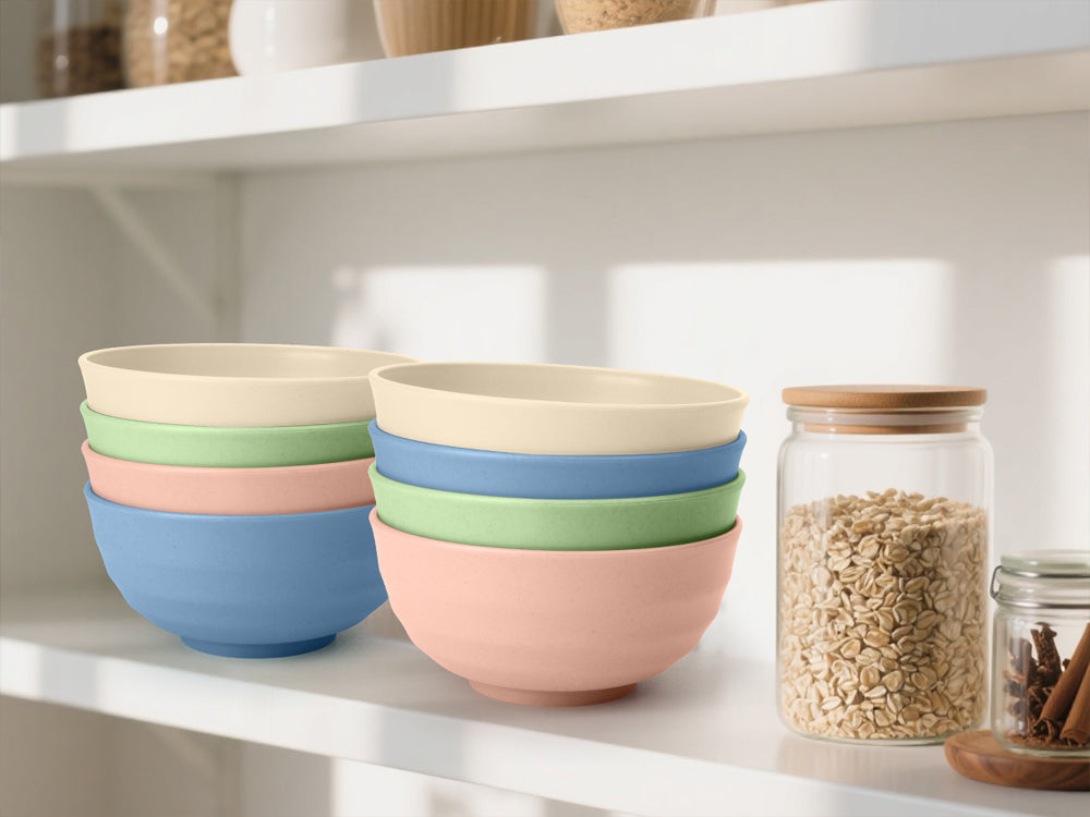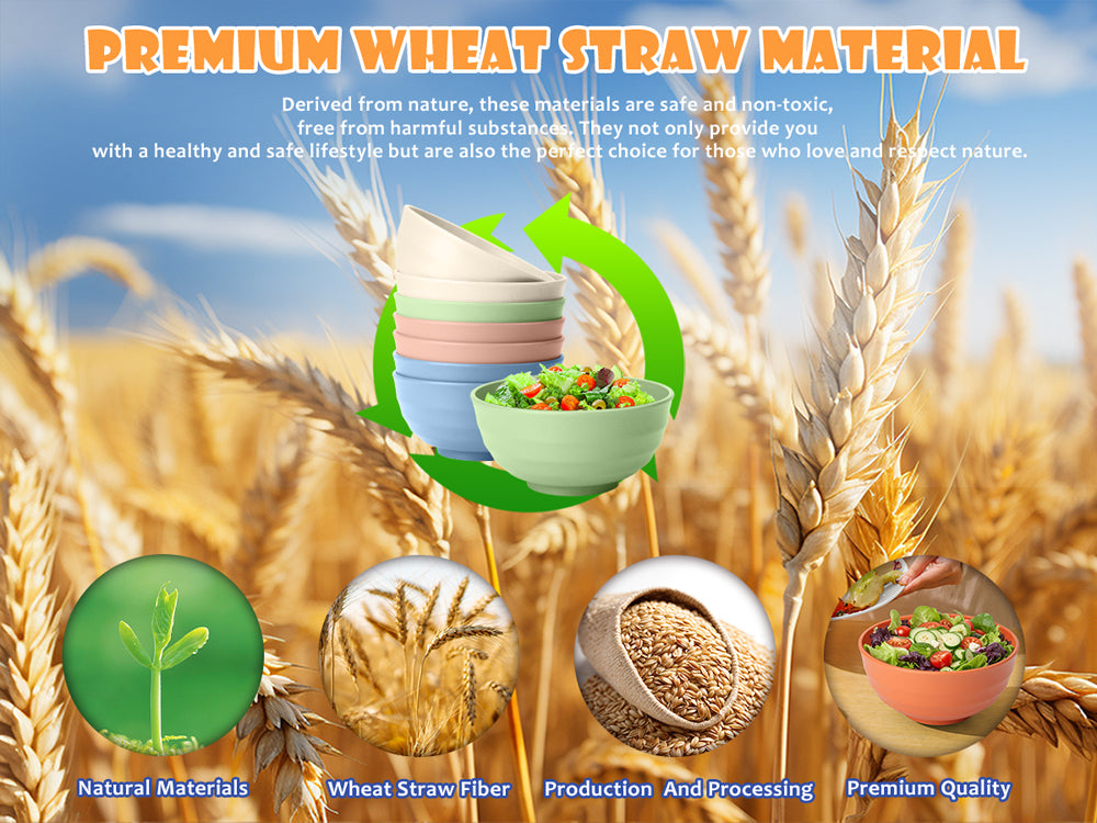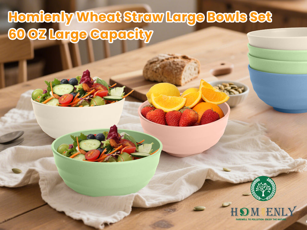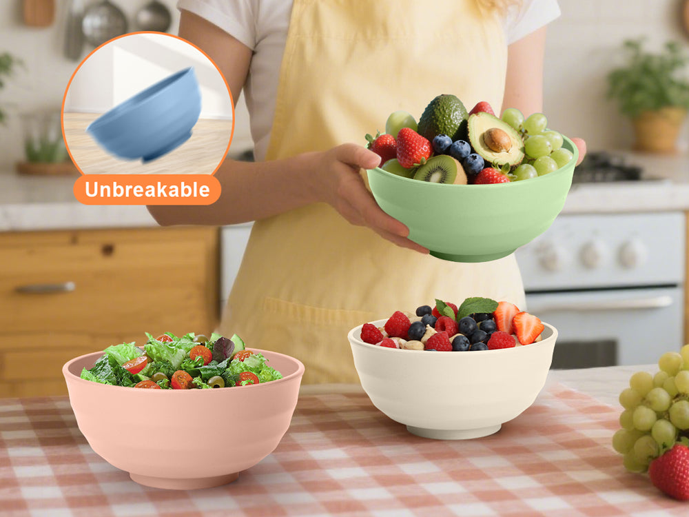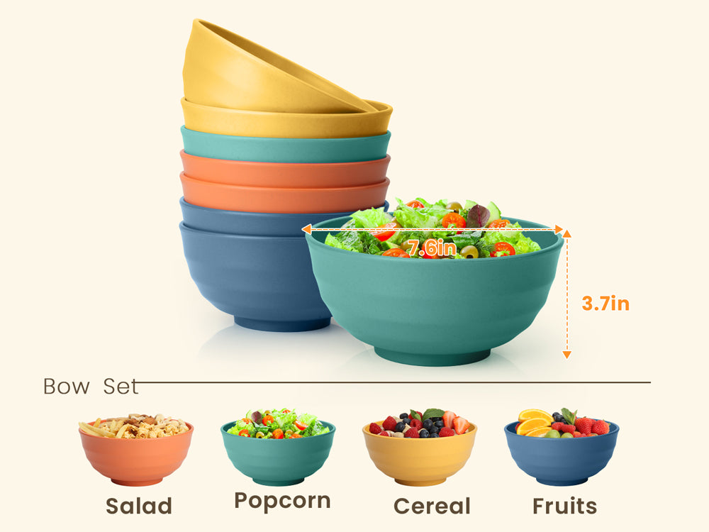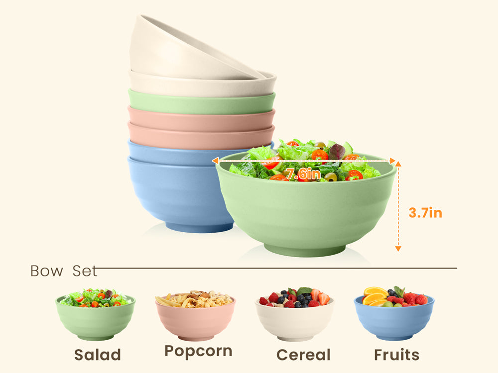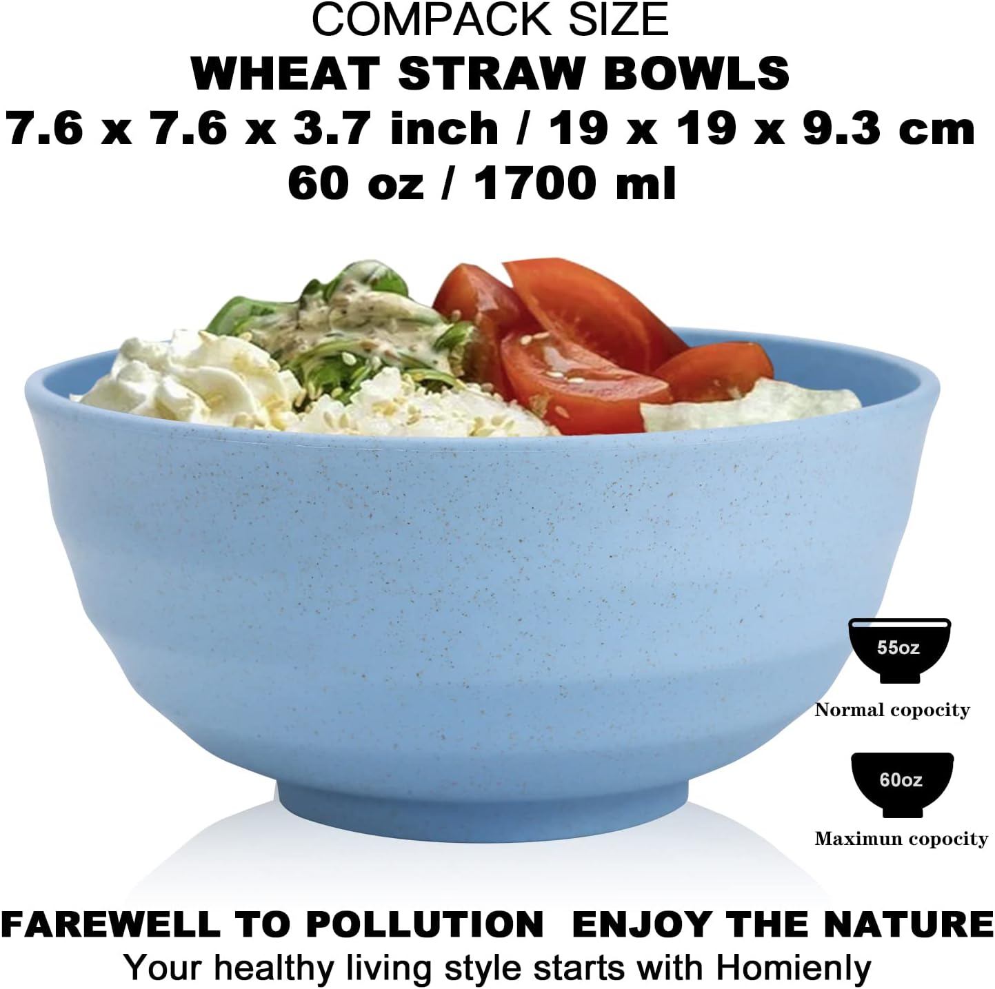 60 OZ Big Salad Bowls,Large Soup Bowl Set of 8,Wheat Straw Bowls,Serving Bowl for Wedding Parties, - Light Color