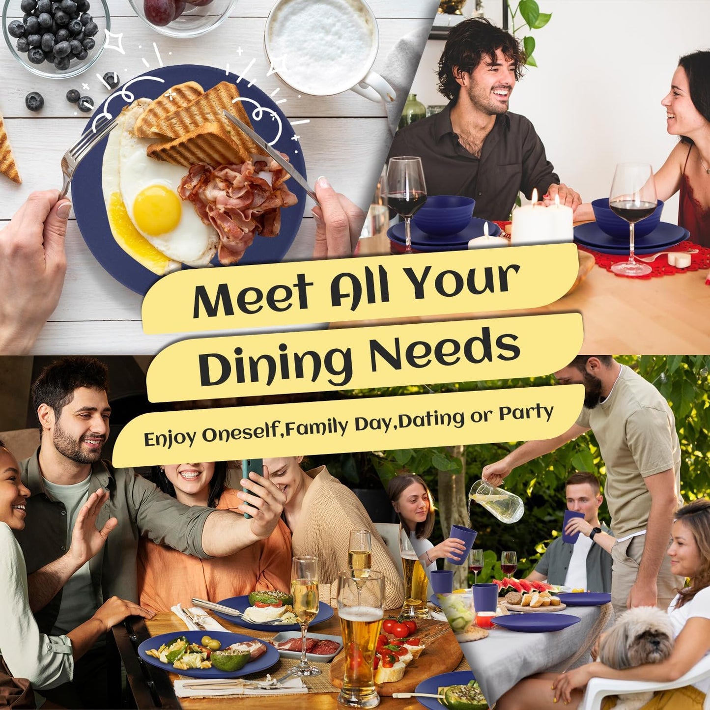 This dinnerware set includes plenty of pieces—enough to fill a dishwasher. The unbreakable design and earthy colors make it great for casual use, picnics, gatherings, or families with kids. Very durable, dishwasher-safe, and hard to damage. After a few weeks of use, it has become my daily go-to set—easy to clean, tough enough to throw into the sink, even like a frisbee, and still holds up perfectly
